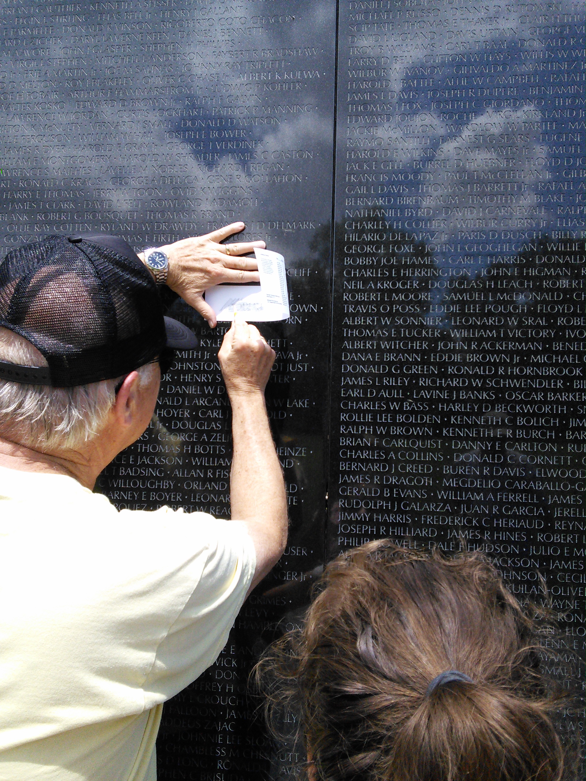Classmate Dennis Brown at Vietnam Veterans Memorial Photos by Jim Riley |